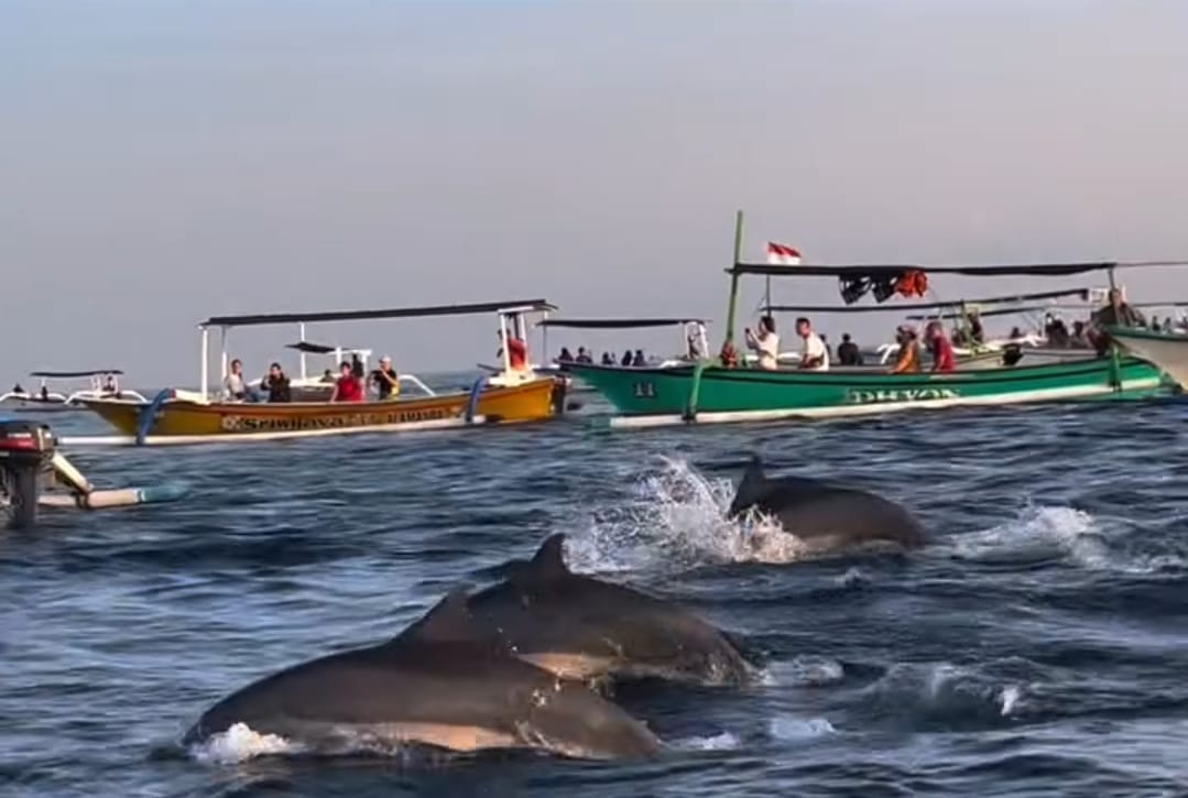 Pantai Lovina, terletak di pesisir utara Bali, memukau dengan keindahan pasir hitamnya yang unik, air laut yang jernih, dan pemandangan matahari terbit yang memukau. Namun, pesona Pantai Lovina sebenarnya terletak pada keajaiban yang terjadi di tengah lautan biru. Sekitar pukul 6 pagi, lumba-lumba mulai muncul di permukaan air, menampilkan pertunjukan alam yang menakjubkan.